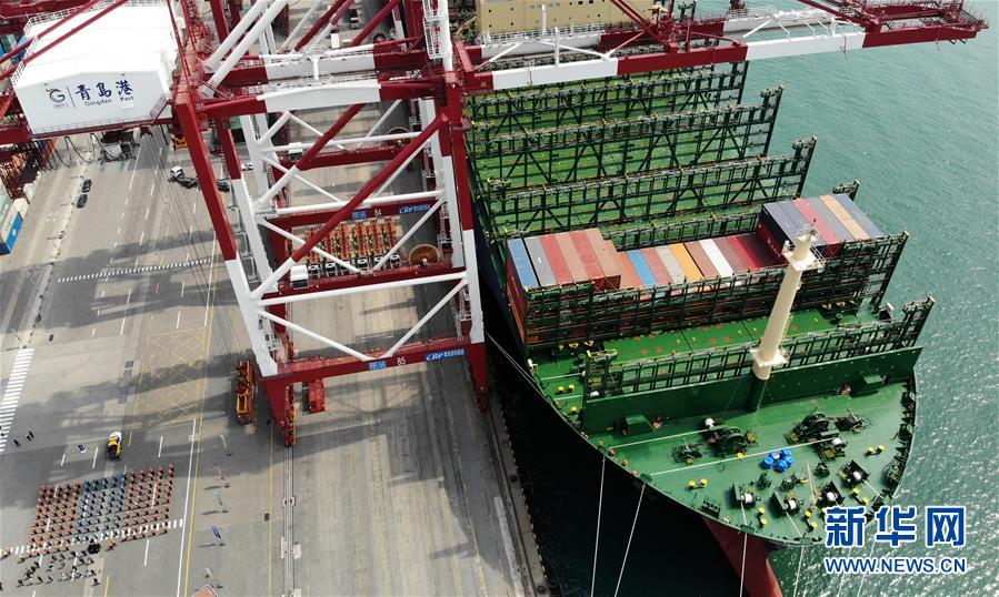 世界最大集裝箱船首航青島港 甲板面積相當(dāng)于3.5個足球場