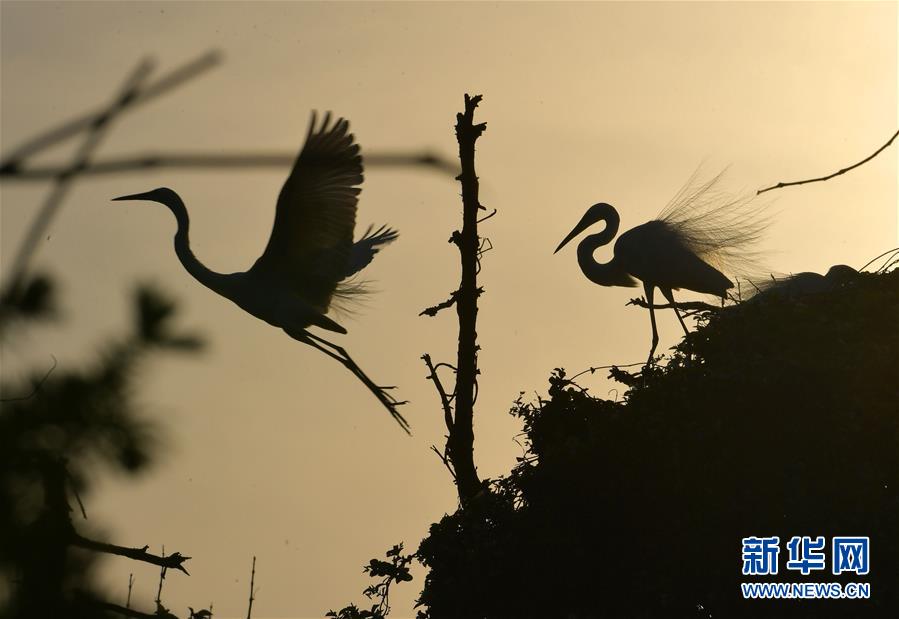 象山森林公園內(nèi)的白鷺(4月26日攝)。近日,在江西省南昌市新建區(qū)象山森林公園內(nèi),已安家筑巢的大批鷺鳥正陸續(xù)孵化后代,一派生機勃勃的景象。新華社記者彭昭之攝