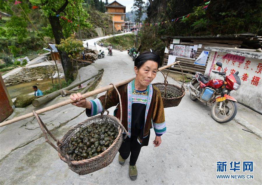 當(dāng)日,廣西融水苗族自治縣扶貧部門將11000斤螺苗送到桂黔烏英苗寨,免費發(fā)放給34戶脫貧戶和貧困戶。烏英苗寨位于桂黔交界的大苗山深處,共有140戶600多人,其中100戶屬廣西柳州市融水苗族自治縣桿洞鄉(xiāng)黨鳩村,40戶屬貴州省從江縣翠里瑤族壯族鄉(xiāng)南岑村。這里交通不便,土地資源匱乏,自然環(huán)境惡劣,是一個貧困的苗寨。
