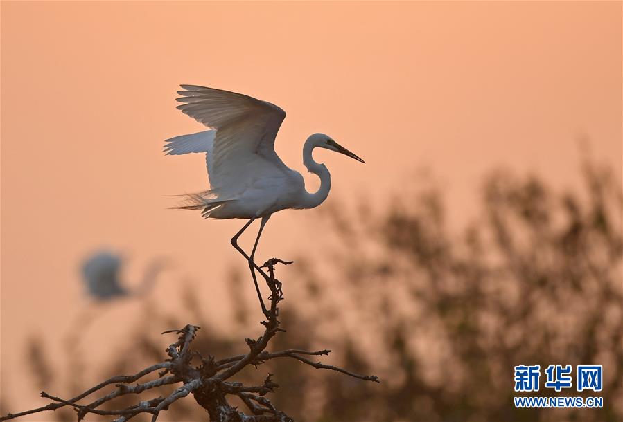 白鷺在位于鄱陽湖畔的南昌市象山森林公園內棲息(4月27日攝)。近日,在江西省南昌市新建區(qū)象山森林公園內,已安家筑巢的大批白鷺進入繁殖旺季。在夕陽的照耀下,白鷺時而翩翩起舞,時而展翅盤旋,構成一幅美麗的自然生態(tài)畫卷。新華社記者萬象攝