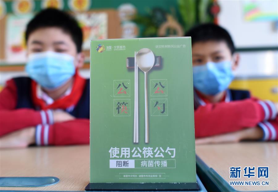 4月30日,諸暨市暨陽小學五年級4班學生在主題班會中。當日,浙江省諸暨市暨陽小學五年級4班開展“公筷公勺新家風”主題班會活動,通過海報設(shè)計、情景劇表演等強化孩子們使用公筷公勺的意識,倡導(dǎo)文明用餐。新華社記者 韓傳號 攝