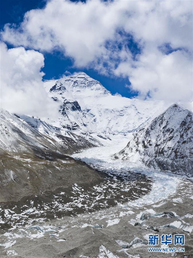 位于珠穆朗瑪峰腳下海拔5400米左右的中絨布冰川(4月30日攝,無(wú)人機(jī)照片)。位于珠穆朗瑪峰腳下海拔5400米左右的中絨布冰川,巍峨壯觀,冰塔林托起世界最高峰,讓人嘆為觀止。新華社記者旦增尼瑪曲珠攝