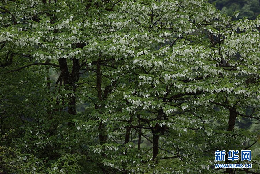 位于四川省滎經(jīng)縣的龍蒼溝國(guó)家森林公園里,鴿子花盛開(kāi)(5月4日攝)。目前,位于四川省大相嶺山脈東麓北坡的龍蒼溝國(guó)家森林公園里,約8萬(wàn)畝鴿子花盛開(kāi),猶如鴿群展翅欲飛。鴿子花即珙桐花,珙桐是珍稀植物,有著植物“大熊貓”“活化石”之稱,是國(guó)家一級(jí)保護(hù)植物,也是著名的觀賞植物。2008年,華中農(nóng)業(yè)大學(xué)、湖北民族學(xué)院和四川省縈經(jīng)縣林業(yè)部門(mén)聯(lián)合對(duì)龍蒼溝森林公園的珙桐進(jìn)行了種群生態(tài)學(xué)調(diào)查,發(fā)現(xiàn)珙桐在這里共分布約8萬(wàn)畝,集中成片分布近4萬(wàn)畝。珙桐面積之大、株數(shù)之多、密度之高,十分罕見(jiàn)。新華社記者 江宏景 攝