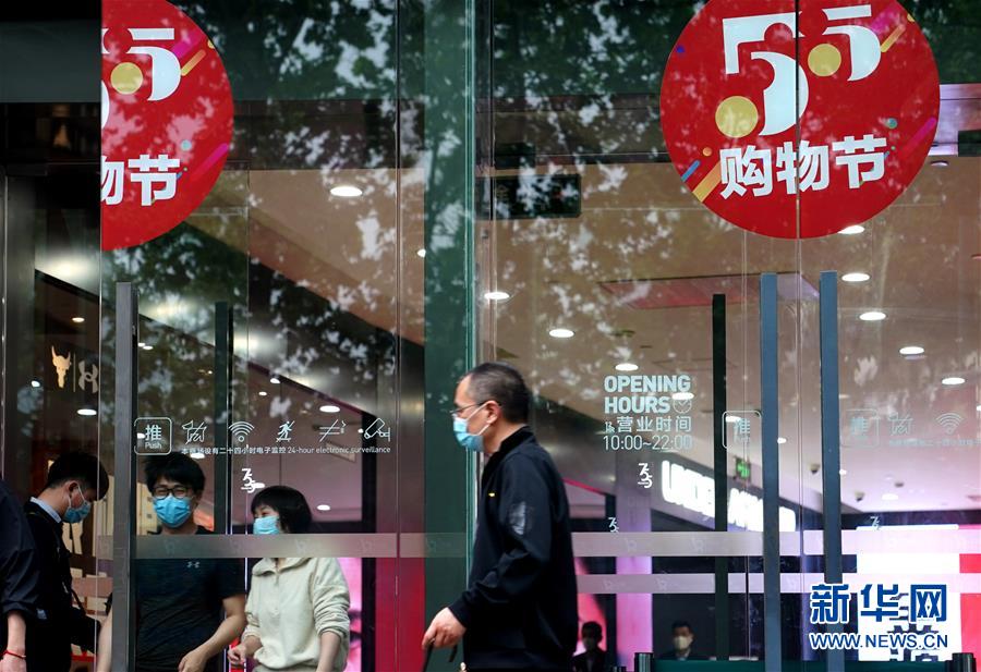 上海淮海路一家商場(chǎng)的“五五購物節(jié)”標(biāo)識(shí)(5月5日攝)。5月4日晚,上海首次啟動(dòng)大規(guī)模商業(yè)促銷活動(dòng)“五五購物節(jié)”,多家在線新經(jīng)濟(jì)企業(yè)參與,通過線上流量?jī)?yōu)勢(shì)反哺線下賣場(chǎng),實(shí)現(xiàn)電商與實(shí)體零售融合互動(dòng),激活消費(fèi)潛力、驅(qū)動(dòng)消費(fèi)復(fù)蘇。據(jù)“上海發(fā)布”的消息,截至5日14時(shí)12分,“五五購物節(jié)”上海地區(qū)消費(fèi)支付總額已超100億元。新華社記者劉穎攝