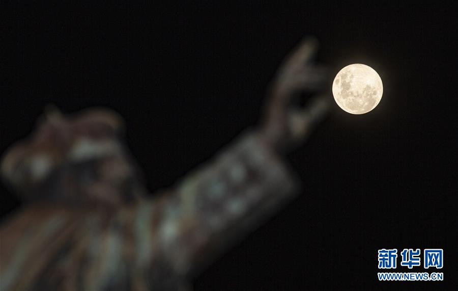 這是5月7日在貴陽拍攝的“超級月亮”?!俺壴铝痢敝傅氖窃铝廖挥诮攸c(diǎn)時(shí)剛好出現(xiàn)滿月。新華社記者劉續(xù)攝