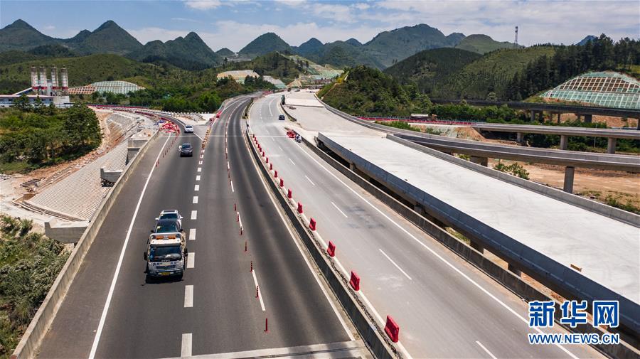 都安高速改擴建路段的惠水樞紐(無人機照片,5月9日攝)。 新華社記者 陶亮 攝