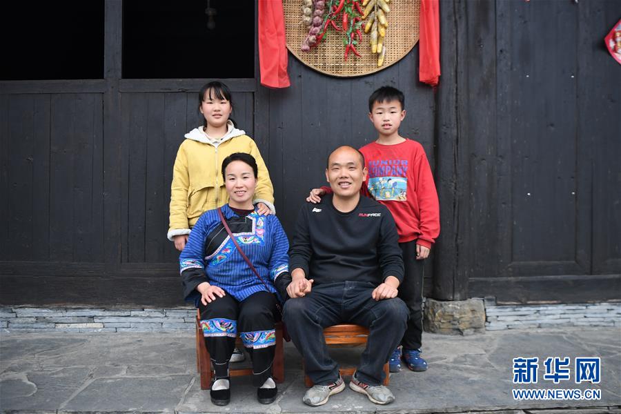 這是4月25日拍攝的楊正邦(前右)一家的合影。楊正邦1978年出生于十八洞村,在外打工多年。近些年,眼看來十八洞村的游客越來越多,村里越來越熱鬧,楊正邦在2017年結束自己的打工生涯回鄉(xiāng)發(fā)展。他先是在村里擺起小吃攤,2018年開起農(nóng)家樂,去年又搭起新房子擴建成民宿,年度家庭人均純收入從2014年的1923元增加到2019年的7173元。新華社記者薛宇舸攝