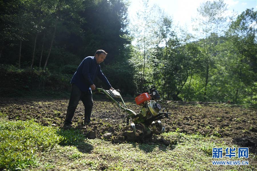 施六金在田間翻耕(4月24日攝)。1973年出生于十八洞村的施六金,由于父親患病很早就放棄學業(yè)和母親扛起了家庭的重擔。為了生活,他還曾遠去東南亞打工。2015年,看到家鄉(xiāng)的變化,施六金回到村里開起了農(nóng)家樂,年度家庭人均純收入也從2014年的1715元增長到了2019年的35696元。2018年,施六金與心愛的人組建了家庭。今年初,施六金與愛人迎來了一個大胖小子?!白鋈俗鍪乱没貓蠛透卸鳌!笔┝鸾o剛出生的兒子取名施澤恩。新華社記者薛宇舸攝