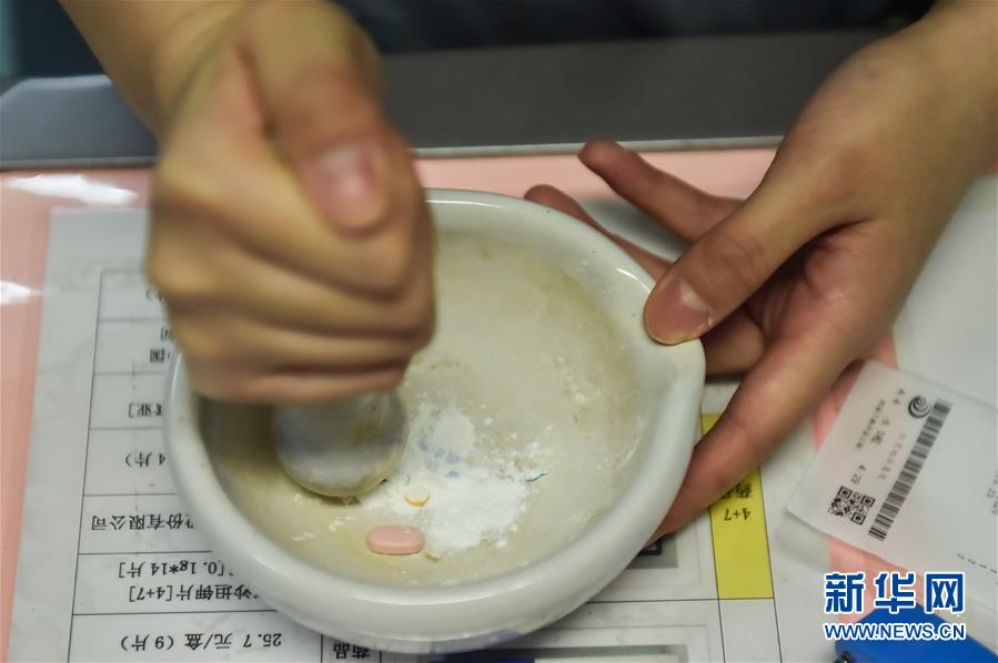 5月11日,在北京地壇醫(yī)院感染二科護(hù)士站,一名護(hù)士為不方便服藥的病人研磨藥片。北京地壇醫(yī)院是北京市收治新冠肺炎患者的定點(diǎn)醫(yī)院之一,醫(yī)院的醫(yī)護(hù)人員一直奮戰(zhàn)在抗擊疫情的一線。在國際護(hù)士節(jié)前夕,記者前往北京地壇醫(yī)院,記錄下抗疫一線護(hù)士的日常工作狀態(tài)。新華社記者彭子洋攝