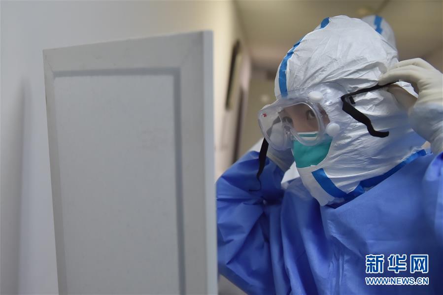 5月11日,在北京地壇醫(yī)院感染二科病房外,護士劉印懷穿戴防護設(shè)備準備進入病房。北京地壇醫(yī)院是北京市收治新冠肺炎患者的定點醫(yī)院之一,醫(yī)院的醫(yī)護人員一直奮戰(zhàn)在抗擊疫情的一線。在國際護士節(jié)前夕,記者前往北京地壇醫(yī)院,記錄下抗疫一線護士的日常工作狀態(tài)。新華社記者彭子洋攝