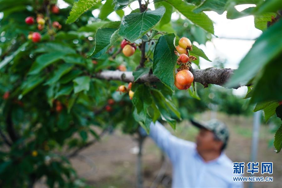 工作人員在金湖縣金綠源果蔬采摘園進(jìn)行農(nóng)業(yè)管理(5月11日攝)。新華社記者季春鵬攝