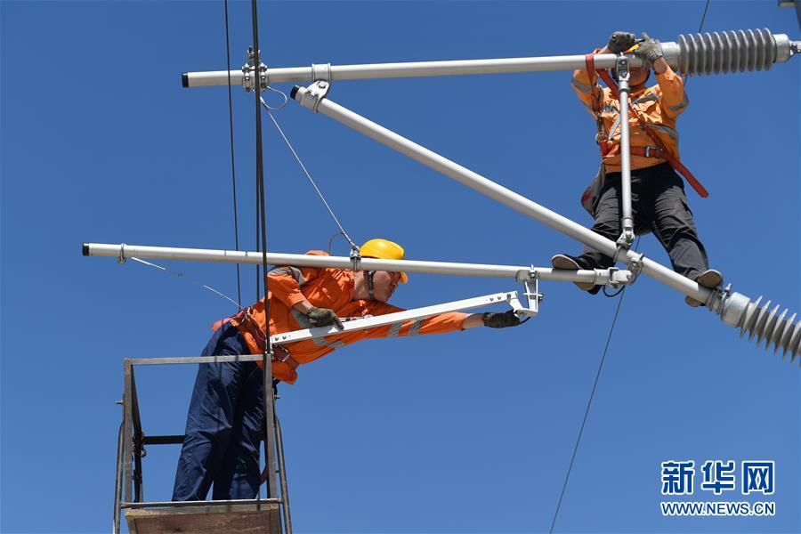 5月12日,中國鐵路上海局集團公司上海高鐵維修段的技術人員在商合杭高鐵浙江湖州段調整接觸網導線。近日,商合杭高鐵合肥至湖州段聯調聯試正有條不紊進行中。中國鐵路上海局集團公司上海高鐵維修段抽調49名精兵強將,持續(xù)對管轄范圍內的高鐵線路、信號、接觸網線進行調試,為下一階段打下基礎。據了解,商合杭高鐵合湖段聯調聯試之后將轉入運行試驗階段,驗收合格并通過安全評估后,力爭6月底具備開通運營條件。新華社記者黃宗治攝