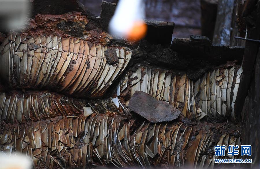這是在廣東陽(yáng)江海陵島拍攝的“南海I號(hào)”船體上嵌入的瓷器(5月12日攝)。新華社記者鄧華攝