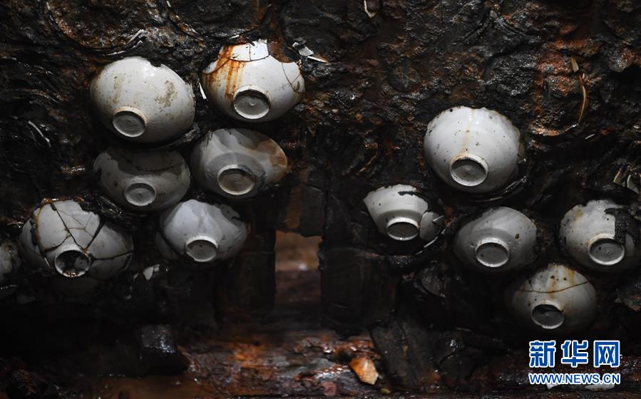 這是在廣東陽(yáng)江海陵島拍攝的“南海I號(hào)”船體上嵌入的瓷器(5月12日攝)。新華社記者鄧華攝
