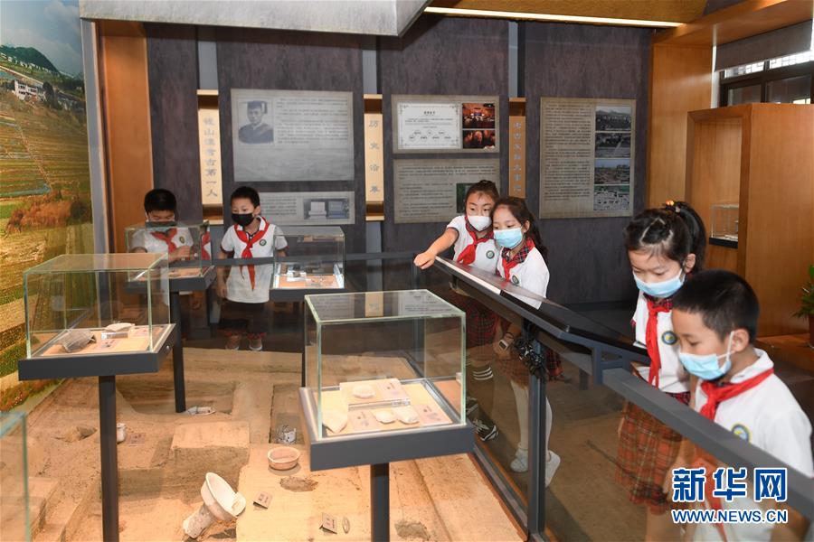 5月13日,小學(xué)生在潞村錢山漾文化展示廳參觀。