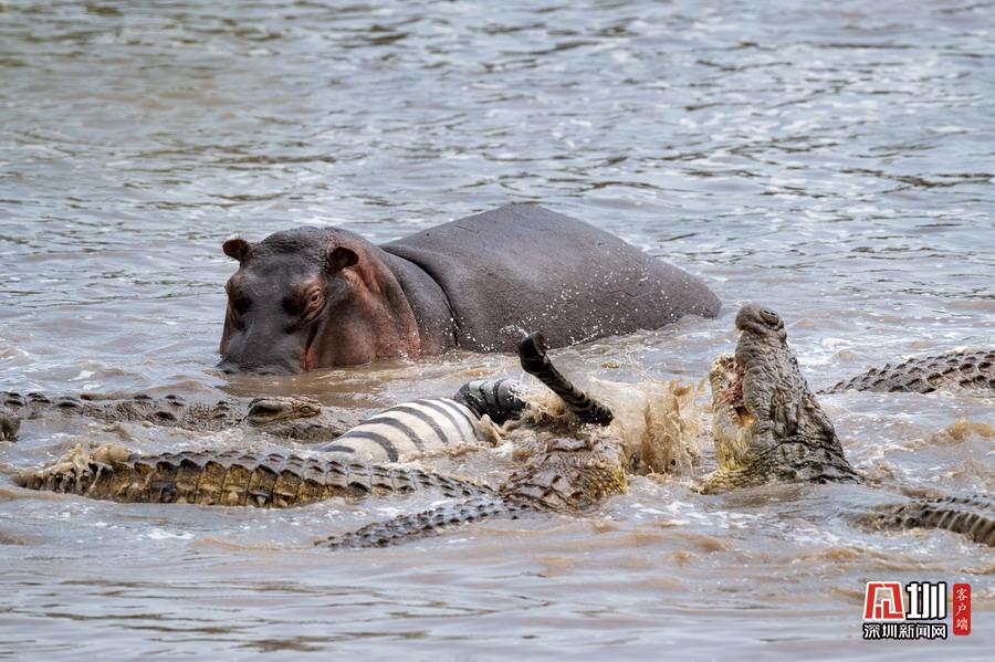 斑馬帶頭過河慘被伏擊鱷魚吞食 旁觀河馬機(jī)智逃脫