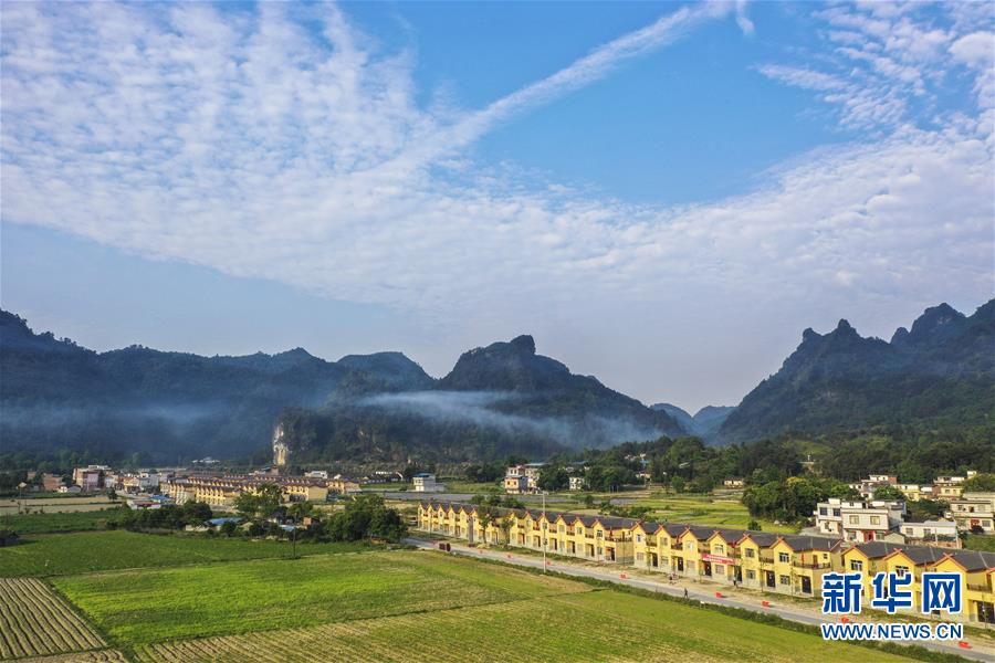 這是廣西南丹縣“千家瑤寨·萬戶瑤鄉(xiāng)”八圩瑤寨易地扶貧搬遷安置點(4月29日攝,無人機照片)。新華社記者周華攝