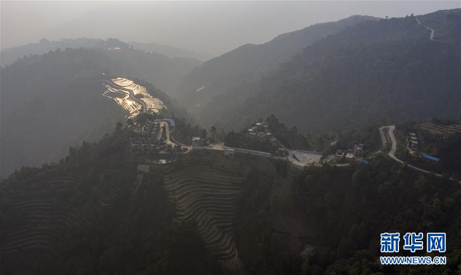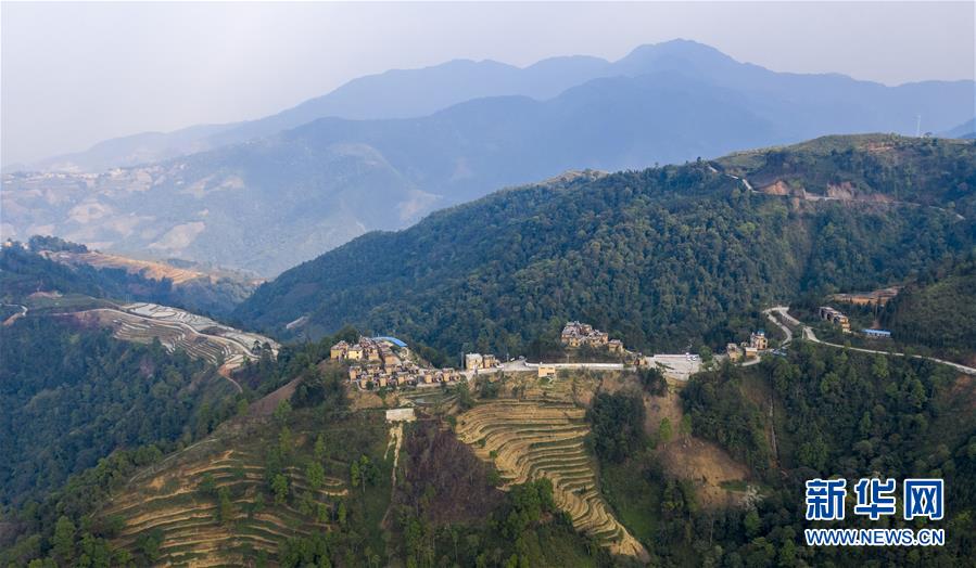 這是3月28日拍攝的大頭村拉祜寨(無人機(jī)照片)。新華社記者江文耀攝