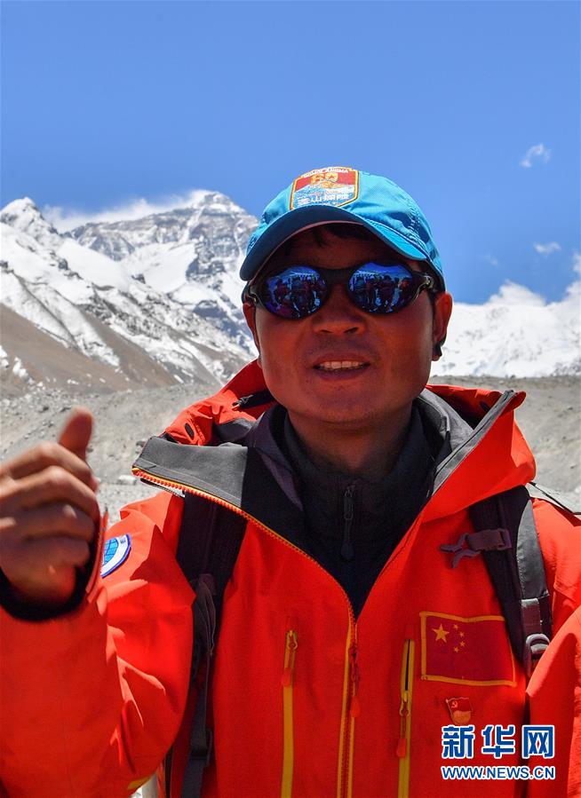 這是5月10日在珠峰大本營拍攝的國測一大隊(duì)副總工程師陳剛。新華社記者晉美多吉攝