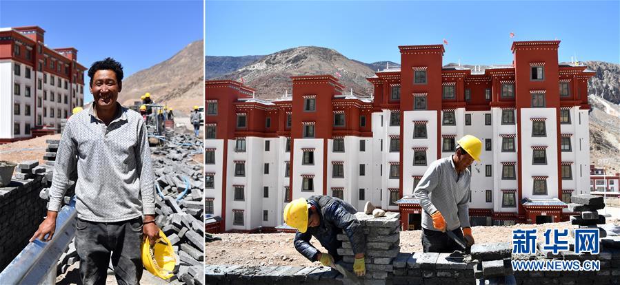 拼版照片:左圖為西藏昌都市八宿縣吉達鄉(xiāng)仲沙村村民平措;右圖為平措(右)在八宿縣西巴易地扶貧搬遷安置點的工地上干活。2019年,平措和家人搬遷到西巴易地扶貧搬遷安置點,住進了75平方米的新居,平措還在安置點找到了一份建筑工的工作,每月有4000多元的收入。在此之前,平措靠在縣城打零工掙錢(5月10日攝)。新華社記者詹彥攝