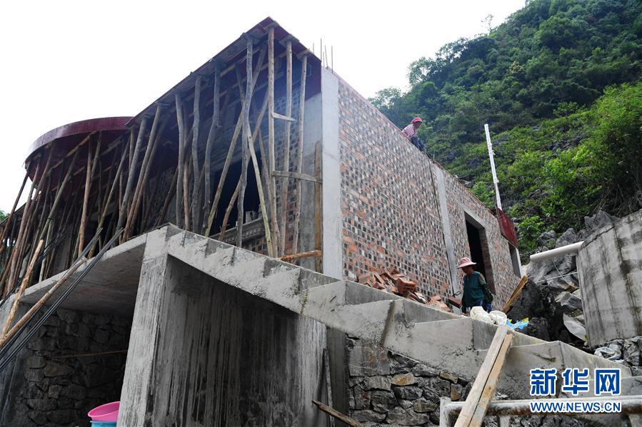 大化瑤族自治縣弄合村弄根屯群眾在建新房(5月13日攝,無人機(jī)照片)。新華社記者周華攝