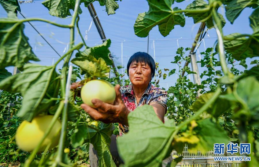 5月20日,新河縣尋寨鎮(zhèn)桃園村村民在采摘甜瓜。近年來,河北省新河縣尋寨鎮(zhèn)在推進(jìn)農(nóng)業(yè)供給側(cè)結(jié)構(gòu)性改革中,把甜瓜種植作為扶貧產(chǎn)業(yè)項(xiàng)目。村集體把部分閑置的土地流轉(zhuǎn)給本村有就業(yè)能力的貧困戶,并引導(dǎo)他們規(guī)?;N植甜瓜,帶動(dòng)群眾脫貧增收。新華社記者王曉攝