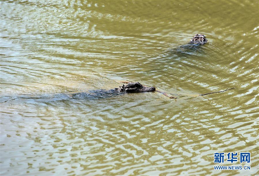 5月20日,放歸的揚(yáng)子鱷在池塘中活動。當(dāng)日,安徽揚(yáng)子鱷國家級自然保護(hù)區(qū)在安徽多地同時放歸揚(yáng)子鱷,當(dāng)天共放歸人工繁育揚(yáng)子鱷32條。該保護(hù)區(qū)計(jì)劃2020年野外放歸揚(yáng)子鱷280條,剩余248條將在今后陸續(xù)放歸。新華社記者韓曉雨攝