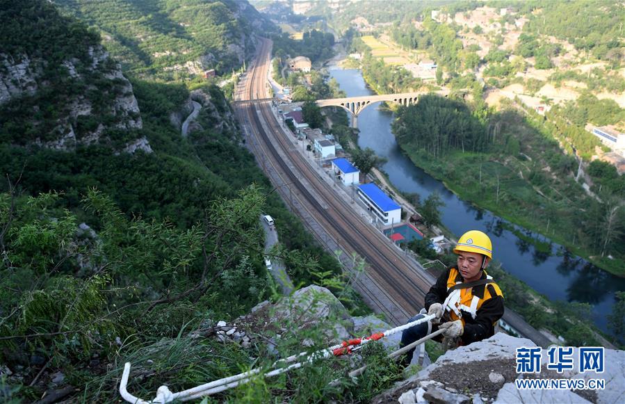 在太行山深處的中國鐵路鄭州局集團(tuán)有限公司月山工務(wù)段,有一群被稱為捅山工的人。每年汛期來臨前,他們要對山體進(jìn)行檢查、清理,在懸崖峭壁間“行走”,揮動著手中的鋼釬,排除威脅鐵路行車安全的危石。