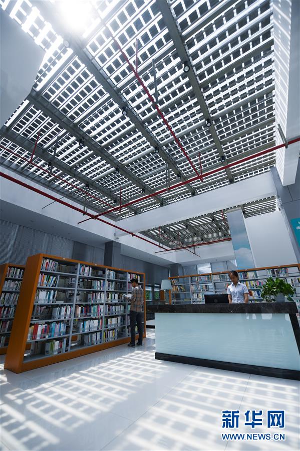 5月21日,市民在新能源小鎮(zhèn)“城市客廳”的圖書館內(nèi)看書。該圖書館頂部的光伏發(fā)電板可以隨時調(diào)整角度和開合,進(jìn)而控制室內(nèi)采光。新華社記者徐昱攝