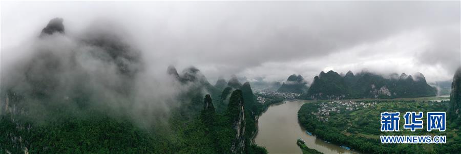 這是在廣西桂林市陽(yáng)朔縣興坪鎮(zhèn)拍攝的山水風(fēng)光(5月21日攝,無(wú)人機(jī)全景照片)。“蒼蒼森八桂,茲地在湘南。江作青羅帶,山如碧玉篸……”一千多年前,唐朝詩(shī)人韓愈寫(xiě)盡桂林山水之美。初夏時(shí)節(jié),在廣西桂林市陽(yáng)朔縣興坪鎮(zhèn),藍(lán)天白云下,煙雨朦朧中,桂林山水盡顯秀美。新華社記者 周華 攝