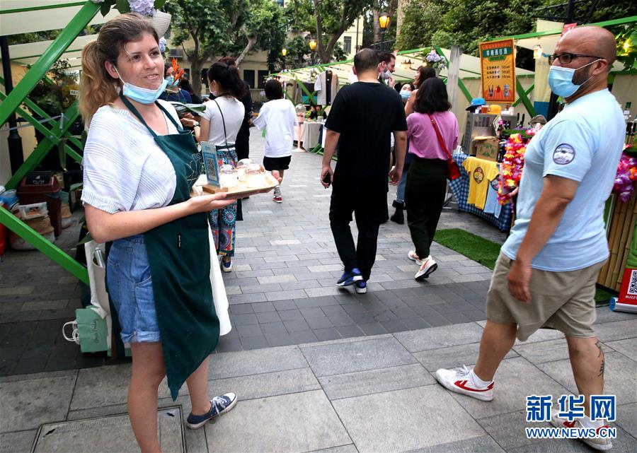 5月24日,調(diào)酒師在上海思南公館露天夜市進行網(wǎng)絡(luò)直播。入夏以來,上海思南公館推出“思南夜派對”夜間經(jīng)濟大排檔,包括生活市集、深夜食堂、夜游露天博物館等板塊,匯集了國潮品牌、創(chuàng)意美食、藝術(shù)衍生品等攤位,為公眾帶來一站式夜間休閑“加油站”,促進夜間消費。新華社記者陳飛攝