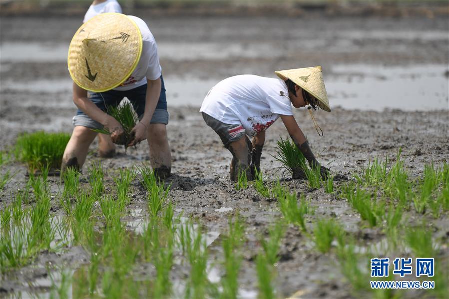 5月24日,小朋友與家長在稻田里參加親子插秧比賽。當日,十余名小朋友在家長的帶領(lǐng)下來到浙江省湖州市吳興區(qū)八里店鎮(zhèn)尹家圩糧油植保農(nóng)機專業(yè)合作社的稻田中,參加親子插秧、稻田捉魚等農(nóng)事體驗活動。新華社記者黃宗治攝