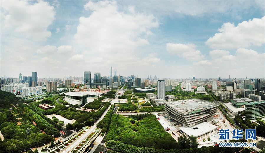從空中俯瞰建設(shè)中的上海圖書館東館(右)及其所在區(qū)域(無(wú)人機(jī)照片,5月22日攝)。 新華社記者 方喆 攝