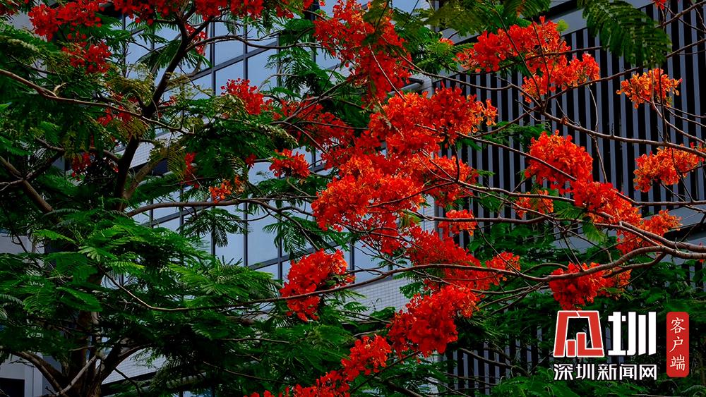 近日,深圳的鳳凰花進(jìn)入花期。TCL科技園內(nèi),隨處可見(jiàn)盛開(kāi)的鳳凰花。徐捷攝