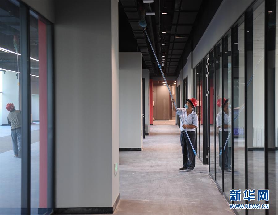 5月27日,保潔人員在“冰壇”內部進行保潔工作。新華社記者張晨霖攝