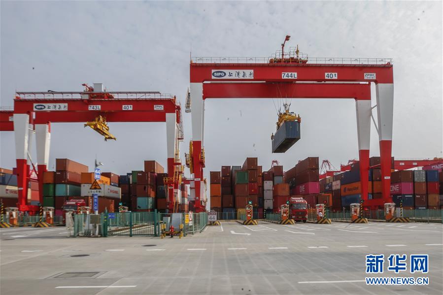 5月28日拍攝的上海洋山港四期自動化碼頭。新華社記者張玉薇攝