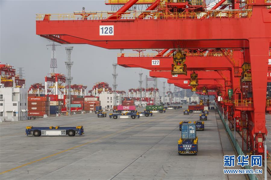 5月28日拍攝的上海洋山港四期自動(dòng)化碼頭。新華社記者張玉薇攝