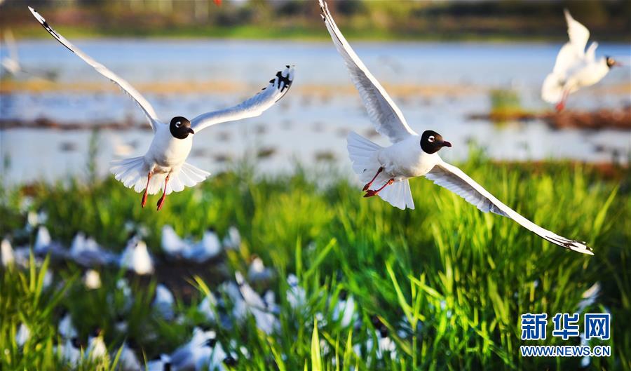 5月28日在陜西省神木市紅堿淖拍攝的遺鷗。陜西省神木市紅堿淖是中國(guó)最大的沙漠淡水湖,近年來(lái)隨著周邊生態(tài)環(huán)境改善,紅堿淖水位逐年提升,水域面積不斷擴(kuò)大,每年四至八月,都會(huì)吸引大批遺鷗來(lái)此繁衍棲息,已成為遺鷗繁殖的重要基地。新華社記者陶明攝