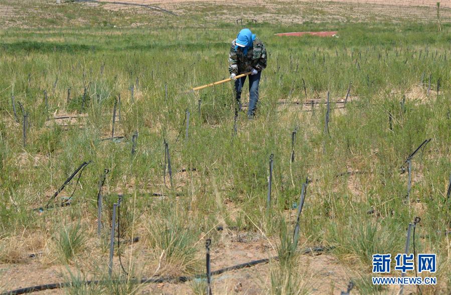 5月28日,工人在巴丹吉林鎮(zhèn)生態(tài)修復(fù)項(xiàng)目南部河道附近修理噴灌設(shè)備,以節(jié)約用水。2017年以來,內(nèi)蒙古阿拉善右旗在巴丹吉林鎮(zhèn)開展生態(tài)修復(fù)項(xiàng)目,種植適合在當(dāng)?shù)厣L的馬蓮、紅柳等植物,修復(fù)生態(tài)的同時(shí)也起到美化作用。巴丹吉林鎮(zhèn)是巴丹吉林沙漠旅游景區(qū)的游客集散地,這里常年干旱少雨,水資源匱乏。新華社記者徐欽攝