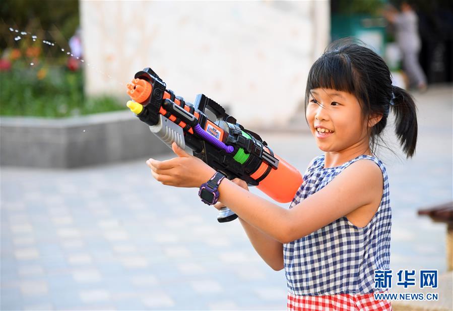 5月31日,在北京市海淀區(qū)中關(guān)村街道新科祥園社區(qū)廣場(chǎng),小朋友在玩耍。新華社記者任超攝