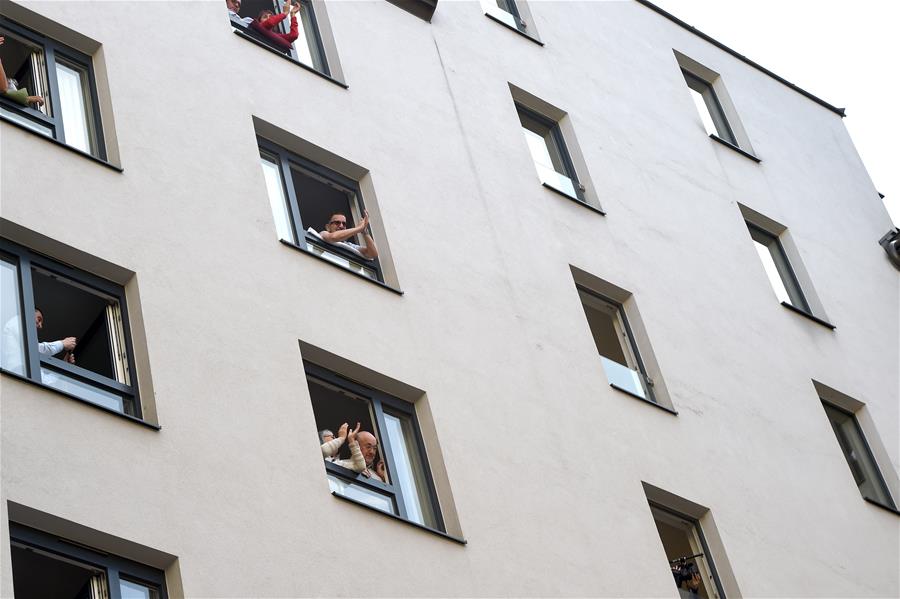 5月30日,在奧地利維也納“時代精神”酒店內,人們在房間窗口欣賞歌劇演出。當日,奧地利首都維也納的一家名為“時代精神”的酒店為迎接“解封”后恢復營業(yè),在其庭院內舉辦“窗口音樂會”。按照奧政府此前公布的“解封”時間表,從29日起,賓館酒店以及健身房、游泳池和游樂場等休閑娛樂場所有條件恢復運營。新華社記者郭晨攝