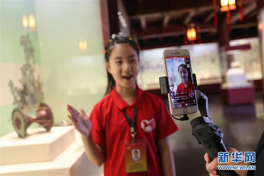 6月1日,小志愿者于冰清在沈陽(yáng)故宮博物館進(jìn)行直播。當(dāng)日是“六一”國(guó)際兒童節(jié),沈陽(yáng)故宮博物館的小志愿者利用網(wǎng)絡(luò)直播的形式,帶領(lǐng)小朋友“云”逛沈陽(yáng)故宮博物館,并向小朋友們?cè)敿?xì)講解正在館內(nèi)展出的“古趣童心——清宮文物中的兒童世界”展覽。新華社記者潘昱龍攝。