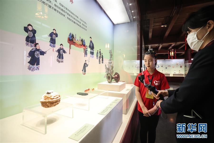 6月1日,小志愿者于冰清在沈陽故宮博物館內(nèi)通過直播向觀眾講解“古趣童心——清宮文物中的兒童世界”展覽。當(dāng)日是“六一”國際兒童節(jié),沈陽故宮博物館的小志愿者利用網(wǎng)絡(luò)直播的形式,帶領(lǐng)小朋友“云”逛沈陽故宮博物館,并向小朋友們詳細(xì)講解正在館內(nèi)展出的“古趣童心——清宮文物中的兒童世界”展覽。新華社記者潘昱龍攝。