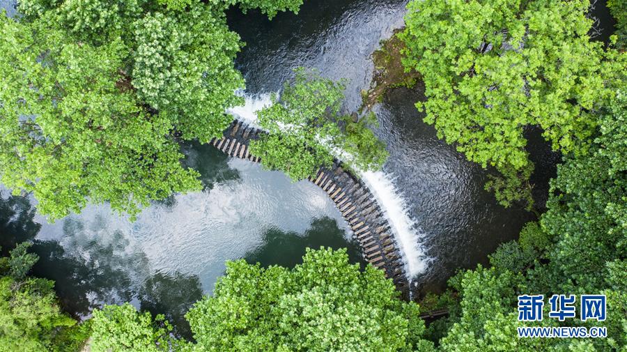 6月2日拍攝的貴陽市阿哈湖國家濕地公園(無人機照片)。初夏時節(jié),貴州省貴陽市阿哈湖國家濕地公園草木蒼翠,風(fēng)景如畫,吸引人們前來休閑游玩。新華社記者陶亮攝。