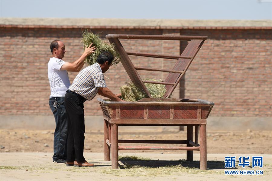 6月2日,在新疆野馬繁殖研究中心,工作人員在為野馬投喂草料。新華社記者丁磊攝。