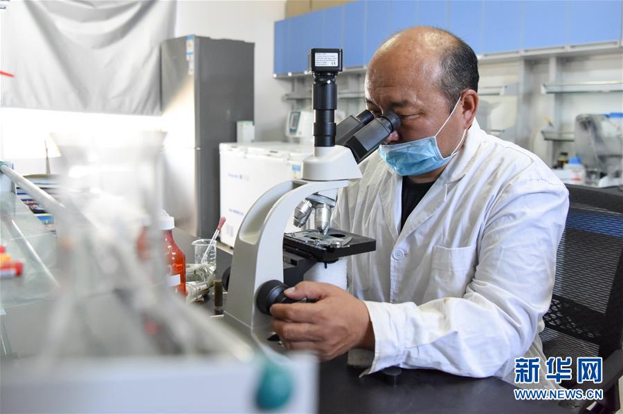 6月2日,在新疆野馬繁殖研究中心,工作人員在進(jìn)行馬糞的寄生蟲監(jiān)測。新華社記者丁磊攝。