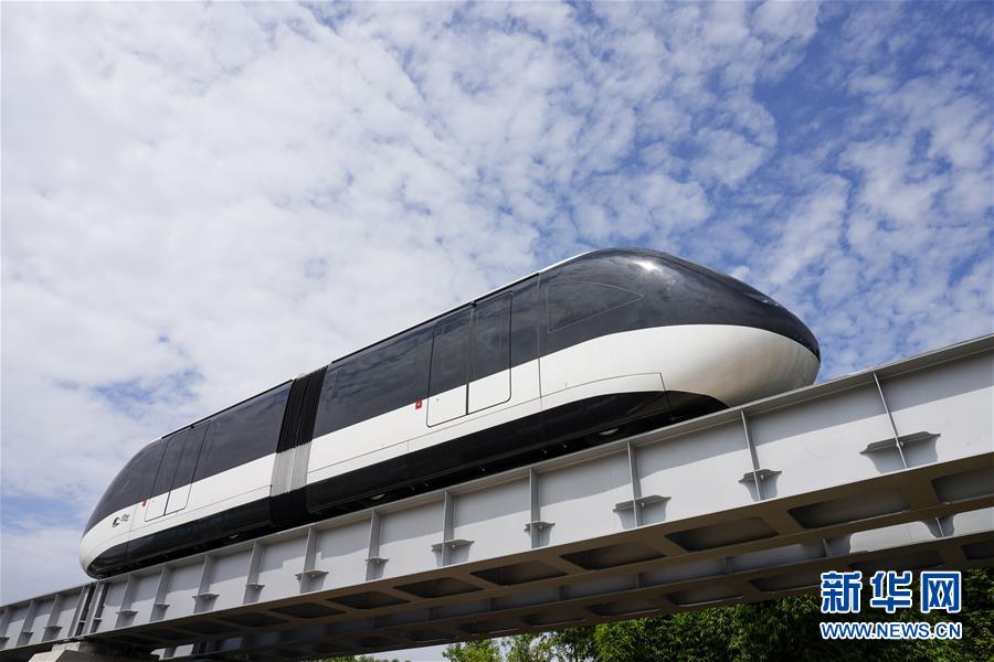 6月3日,一臺“云巴”在專用運行軌道上進行調試。近日,重慶市首條“云巴”示范線項目在重慶璧山區(qū)正式亮相。此次發(fā)布的“云巴”采用電能驅動,具有轉彎半徑小、爬坡能力強、噪音低、安全性高、建設成本低、建造周期短等優(yōu)勢,能為乘客提供更智能、舒適、便捷的出行體驗。據介紹,璧山區(qū)“云巴”示范線項目自2019年8月開建,線路正線全長15.4km,共設車站15座,預計2020年9月全線通車。新華社記者劉潺攝。