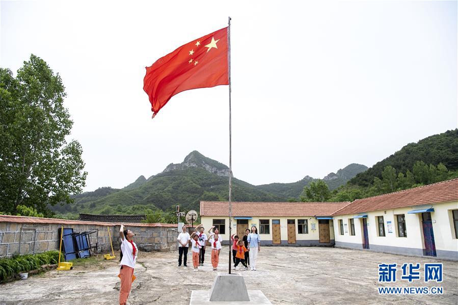 6月2日,開(kāi)學(xué)第一天,馬武寨寄宿制小學(xué)舉行了升旗儀式。新華社記者楊晨光攝。
