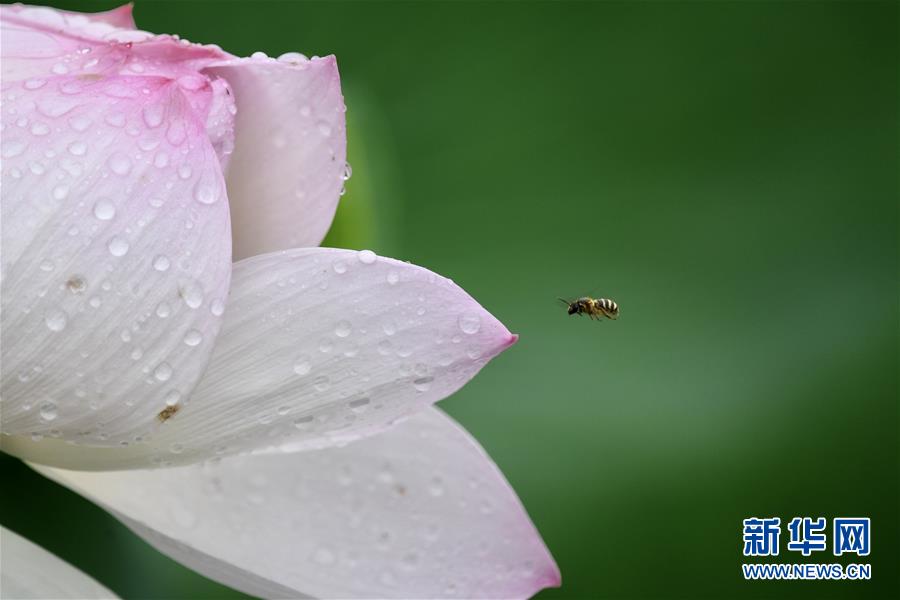 6月7日,一陣小雨過后,福州金山公園內(nèi)盛開的荷花愈加?jì)善G欲滴。新華社記者姜克紅攝