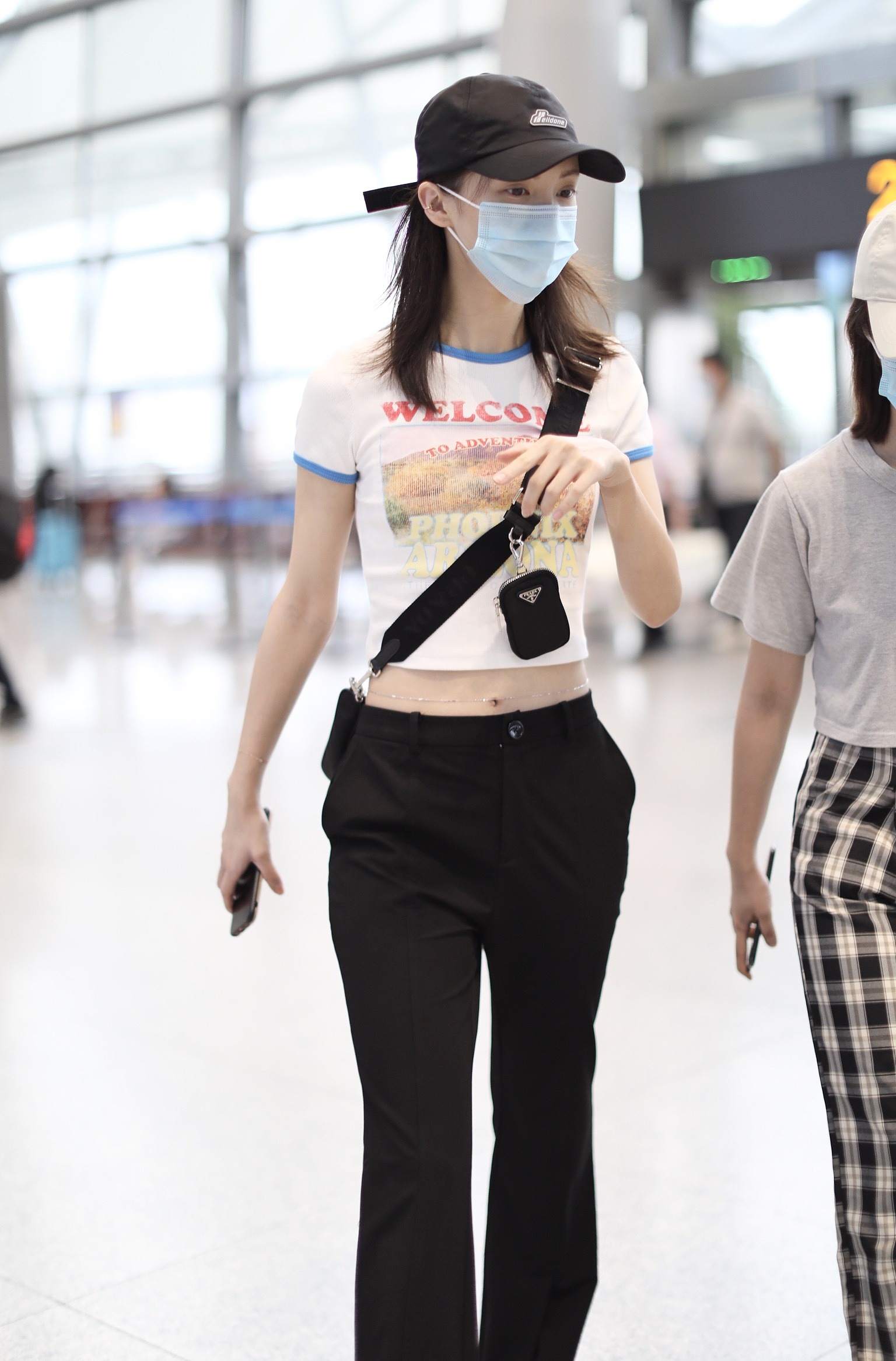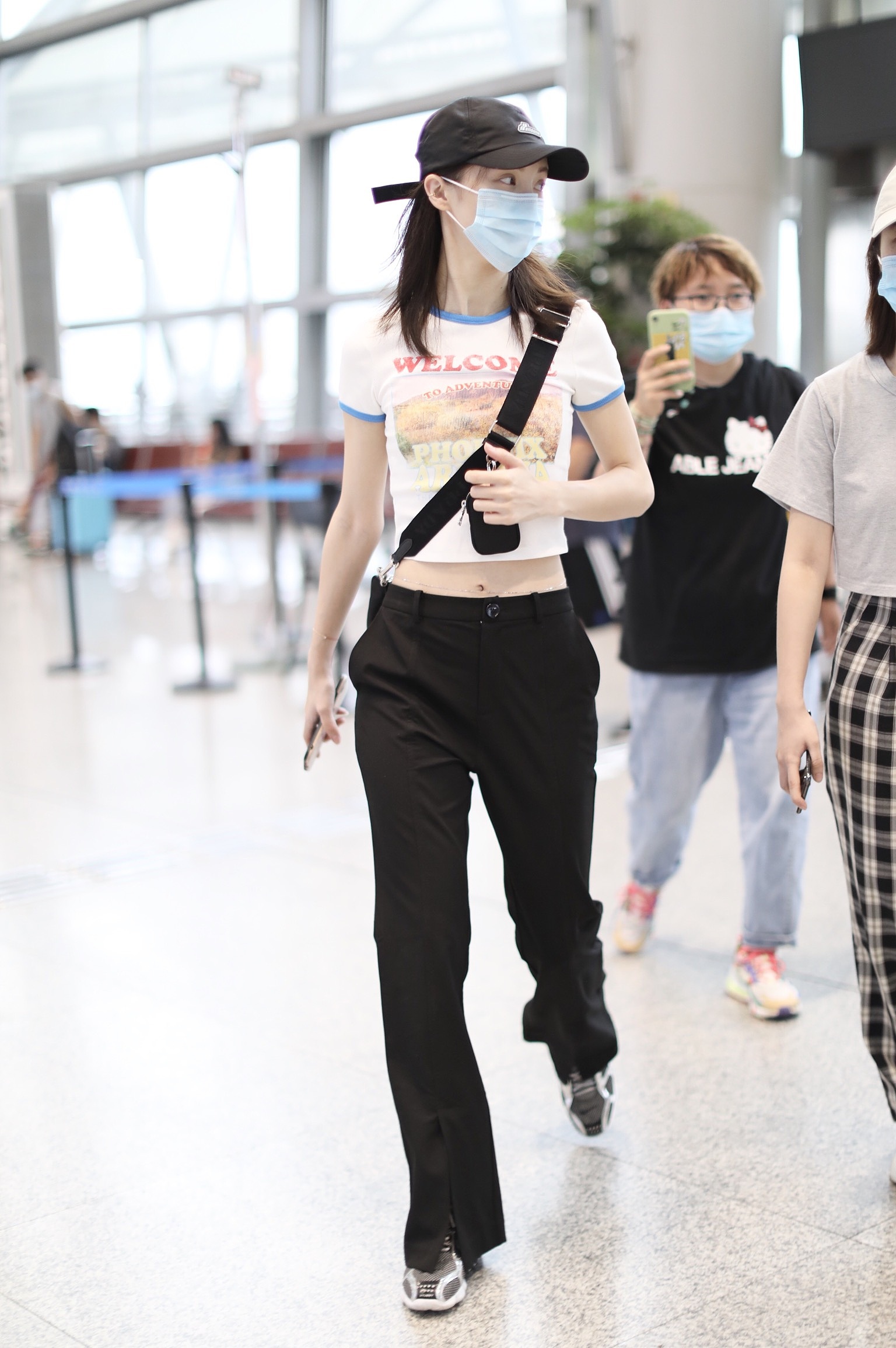 2020年6月9日,湖南長沙,金晨現(xiàn)身機(jī)場。大清早出現(xiàn)的她狀態(tài)不錯,戴著棒球帽身著超短白T,大秀水蛇腰及腰鏈,一路心情超好,更不時笑成月牙眼!